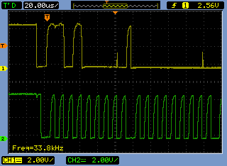 To find it, grab an oscilloscope and probe both the SDA and SCL lines. First, set the oscilloscope in free-running mode and check the voltage: