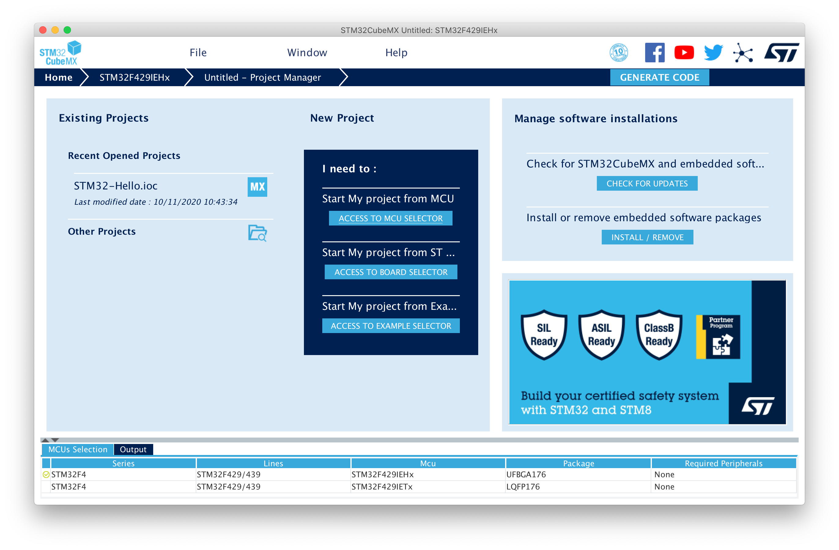 1. Download and install CubeMX: STM32CubeMX - STM32Cube initialization code generator - STMicroelectronics. Note: this requires registration on ST’s website